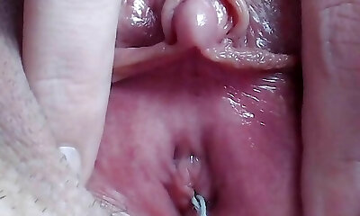 Extreme closeup masturbation with hefty clitoris wet orgasm