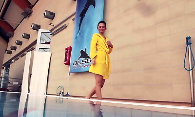 German skinny amateur cougar banged underwater in pool in Mallorca - POV