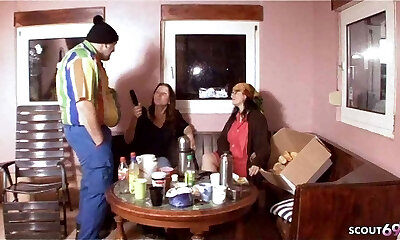 Bootyful Latina teenie and slim Italian babe get into threesome with German fellow