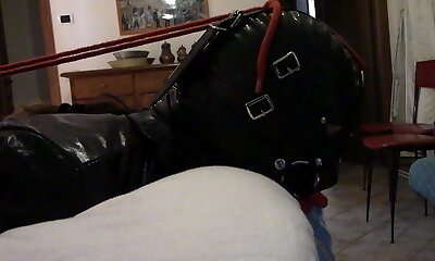 Latex Rubber Catsuit And Rope Bondage: Hot Blond Milf Trying To Escape And Masturbate Wet Pussy