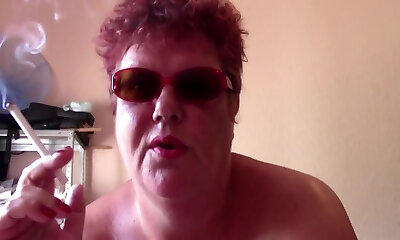 Bbw smoking cigarette with hevay make-up and shaking her beautiful tities